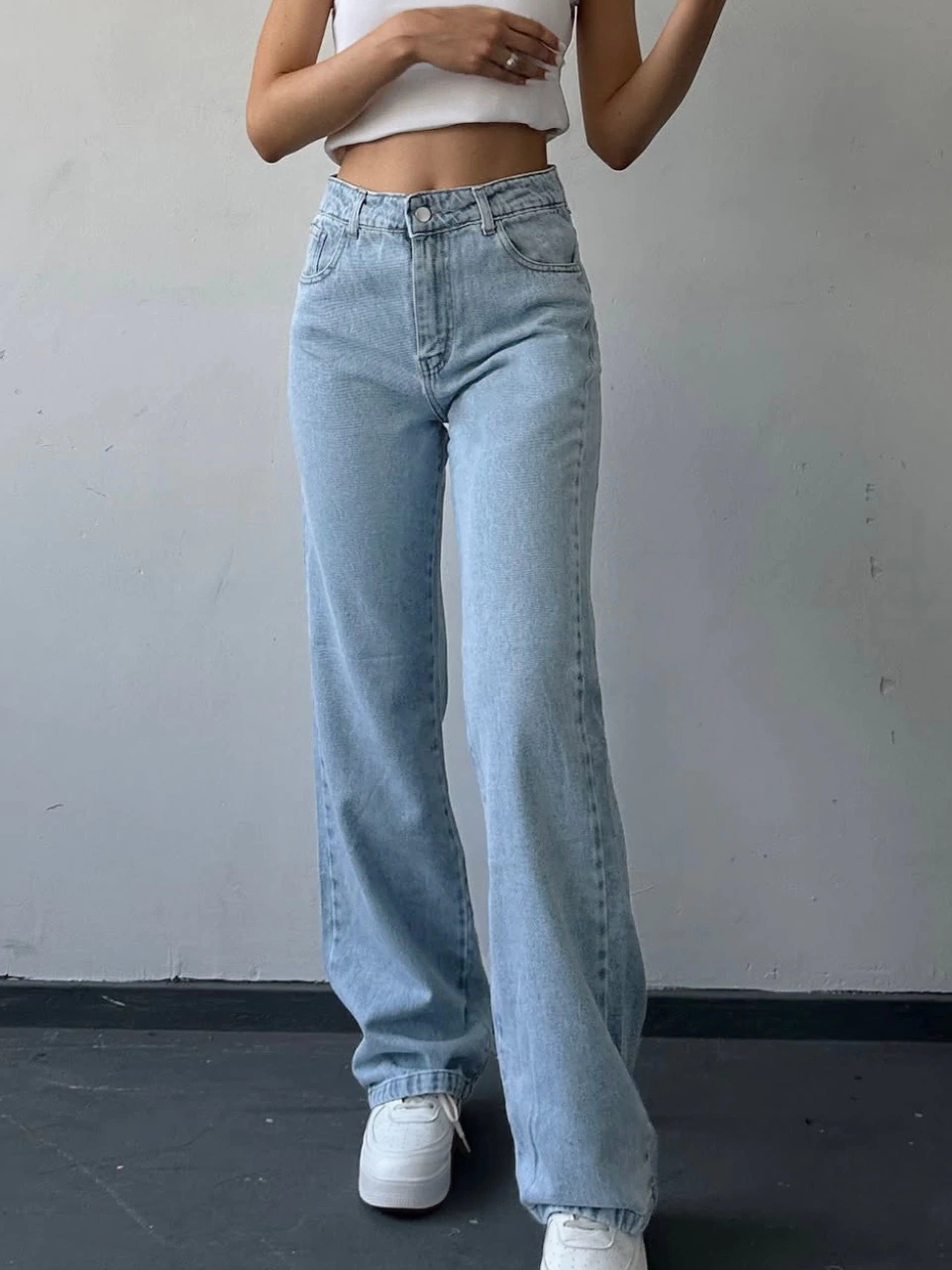 DENIM RÍGIDO CELESTE CLARO, tiro alto